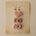 Um trio encantador: dois laços Cherry feitos com fita de gorgurão e uma presilha com aplique fofo e sortido para completar o look com charme.