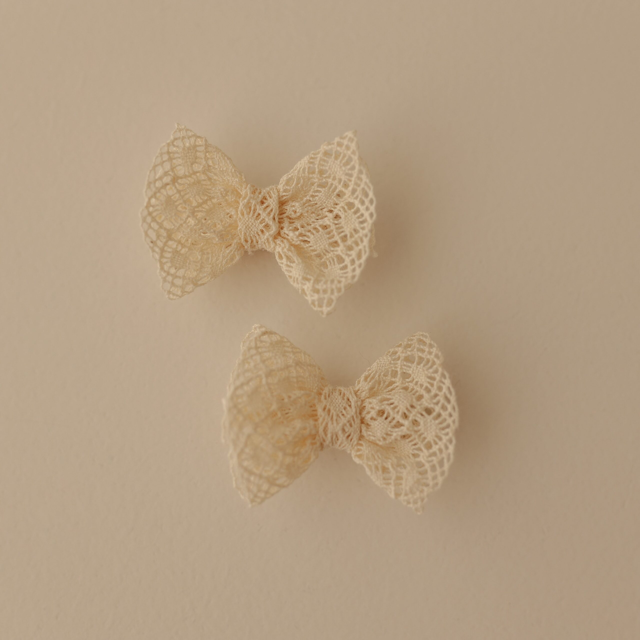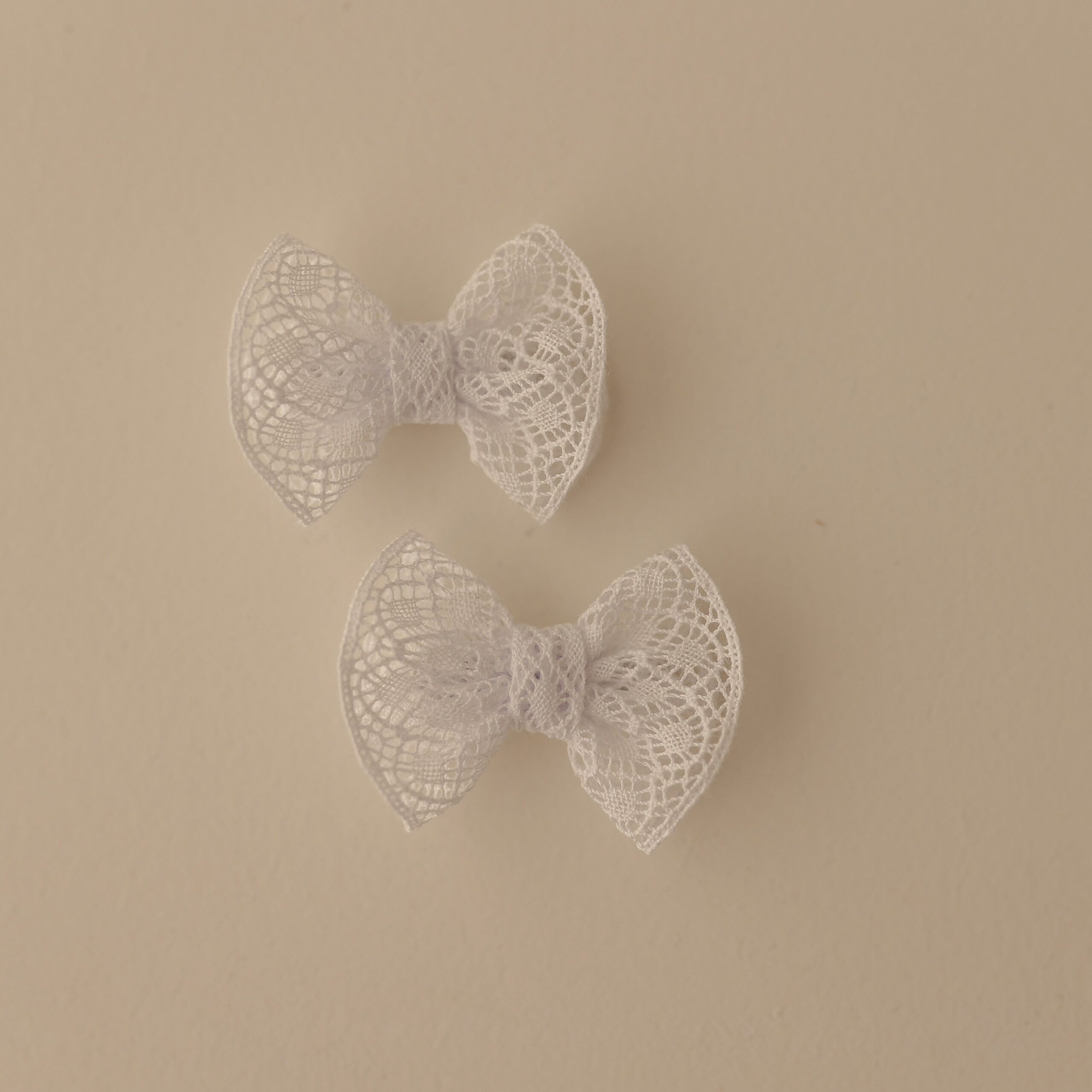 Os laços são confeccionados artesanalmente com renda rústica — cortados, costurados e colados à mão com muito cuidado.